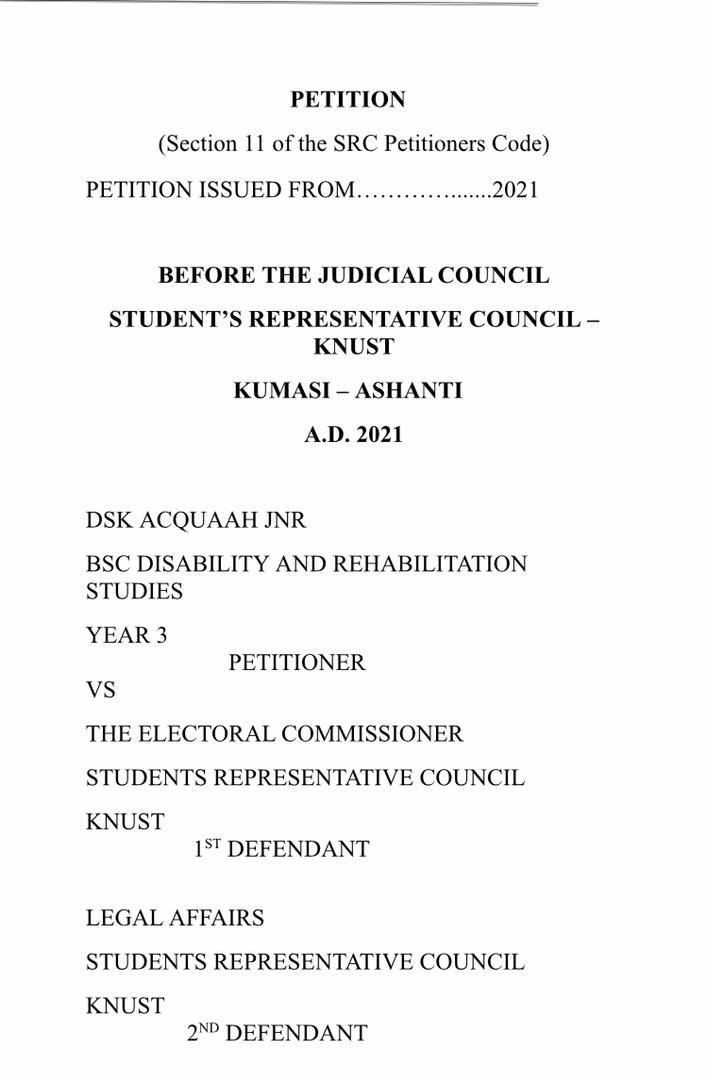 He has further petitioned the office of legal affairs and SRC EC for redress, on the basis of the inconsistencies in the Electoral Processes and results.