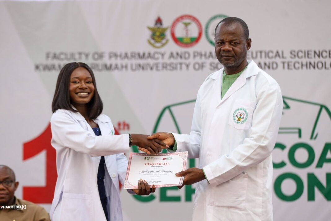 A remarkable feat was recorded at the 2026 Doctor of Pharmacy (Pharm.D.) White Coat Ceremony of the Kwame Nkrumah University of Science and Technology (KNUST), as Miss Janet Amissah Kwarteng, a 5th Year Pharmacy student, emerged as one of the brightest stars of the event.
