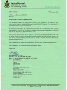 The Kwame Nkrumah University of Science and Technology (KNUST), Kumasi, has officially announced the suspension of Supplementary Examinations for the 2025/2026 and 2026/2027 academic years.