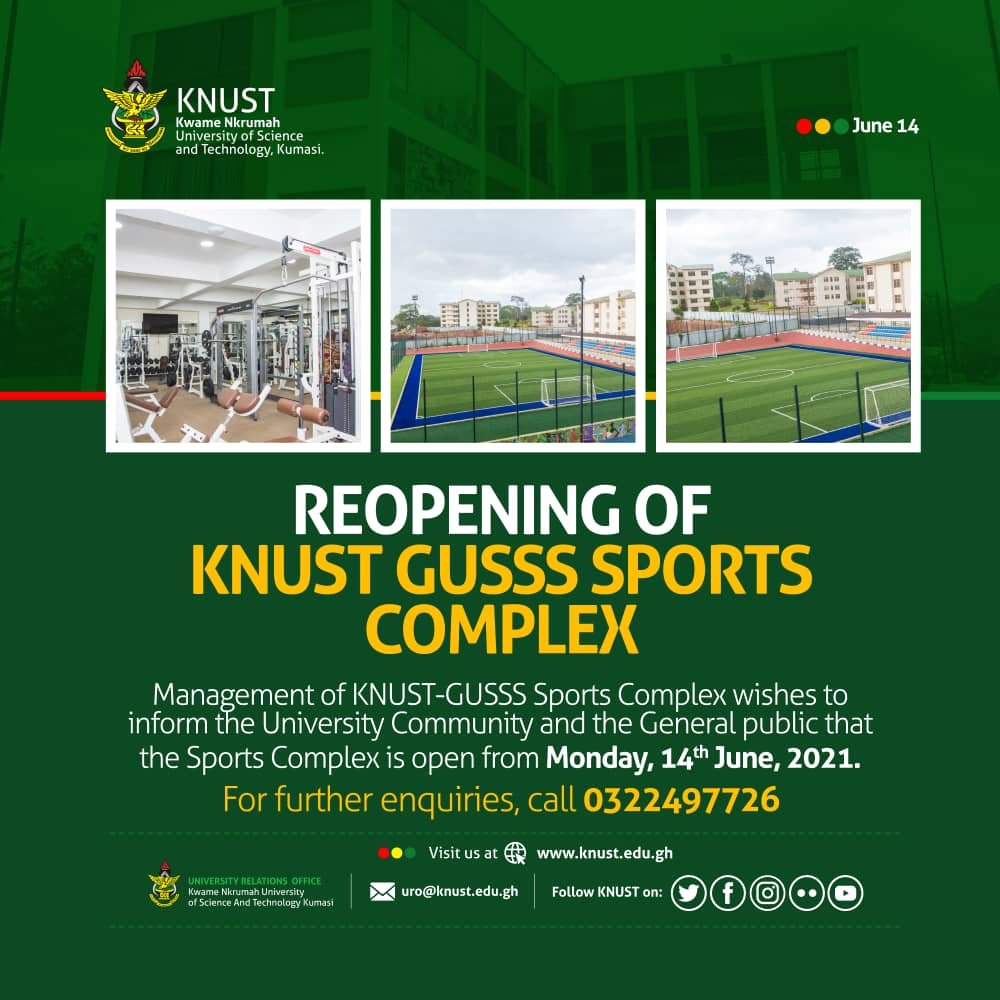 Today on the 14th of June, 2021, the management of the KNUST GUSSS announced their decision to reopen the sports complex not only the students on campus but to the general public as well.