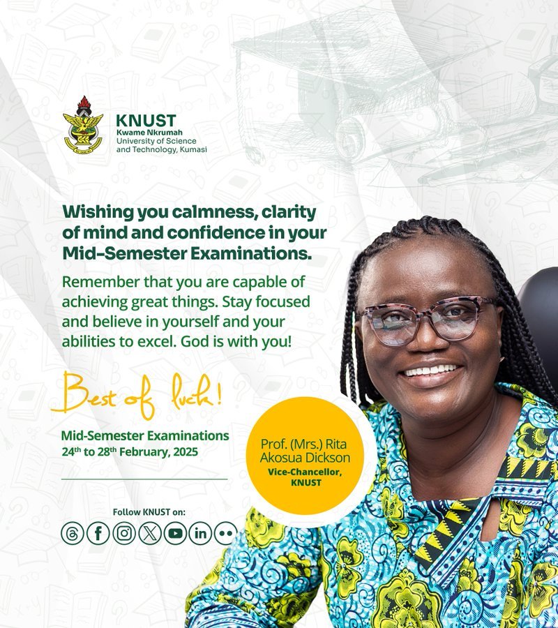 As the mid-semester examinations approach, the Kwame Nkrumah University of Science and Technology (KNUST) community comes together to wish its cherished students the best of luck. This critical period is a testament to the students’ hard work and dedication, and the university is confident that they will make KNUST proud.