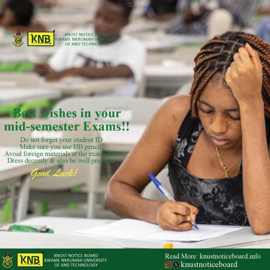As the mid-semester examination period approaches, the Kwame Nkrumah University of Science and Technology (KNUST) Notice Board comes together to wish all students the best in their upcoming exams.