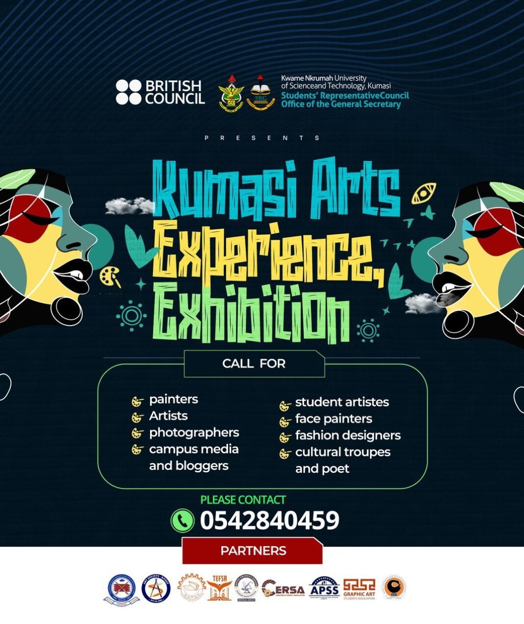 The Office of the SRC General Secretary, in partnership with the British Council, is proud to announce the “Kumasi Arts Experience Exhibition,” a showcase of artistic talents and passions from across the region. This exciting event is scheduled to take place on Friday, March 14, 2025, at the Gardeners Conference Room, Parade Grounds, KNUST.