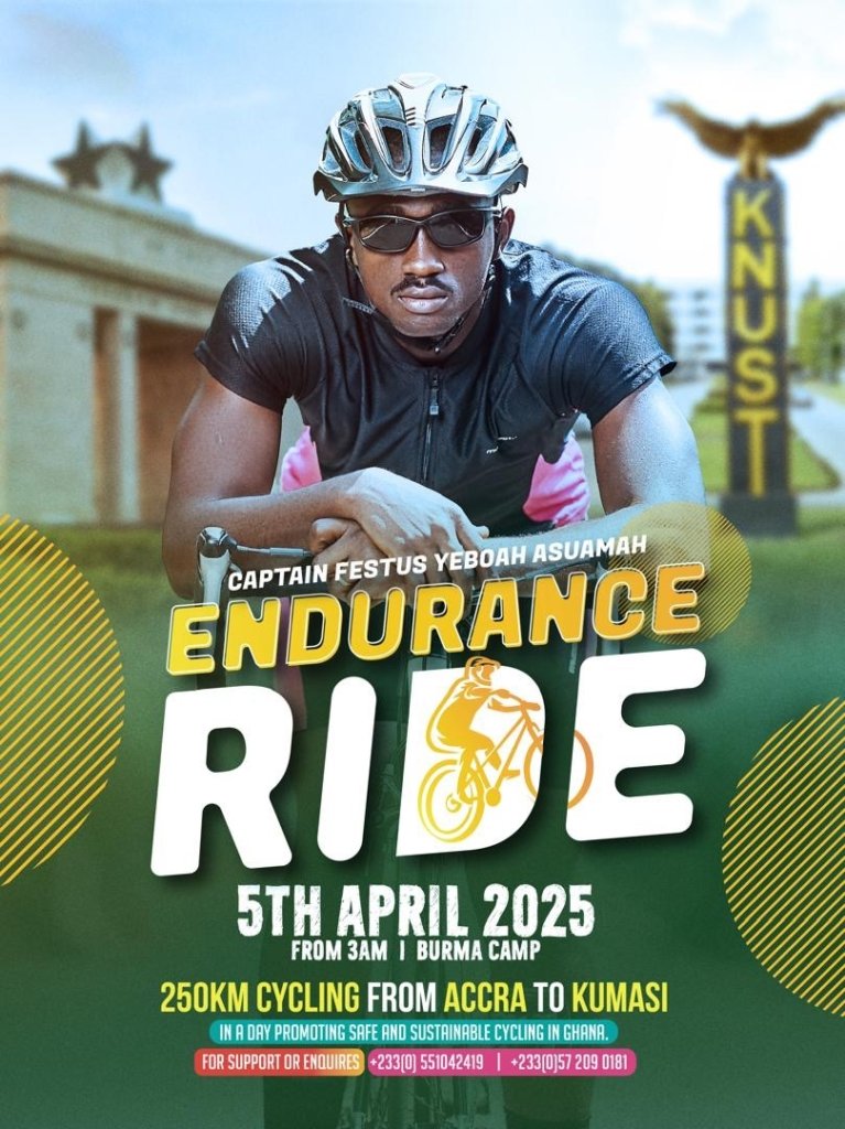 In a poignant tribute to Akpene Adzo Ahadzie, a KNUST architecture student who tragically lost her life in a cycling accident, Ghana Army Captain Festus Asuamah (’17) will embark on a remarkable 250-kilometer cycling journey from Accra to Kumasi.