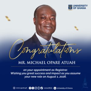 The University of Ghana Governing Council has appointed Michael Opare Atuah as the institution’s new Registrar, with his tenure set to begin on August 1, 2026.